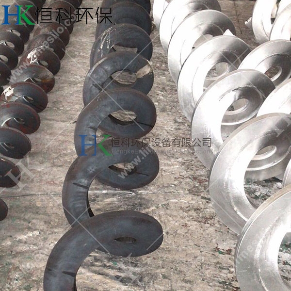 螺旋輸送機(jī)葉片采用連續(xù)(二米一段)成型加工工藝,這種工藝是目前一種比較先進(jìn)的工藝。這種工藝采用扁鋼(原材料平板開條:碳鋼采用火焰切割成扁鋼,不銹鋼采用水刀切割成扁鋼)通過專用設(shè)備直接制作成連續(xù)成型的螺旋葉片。螺旋葉片的各項(xiàng)參數(shù)如外徑,內(nèi)徑,螺距及厚度均可按照要求定制,可根據(jù)實(shí)際無軸螺旋輸送機(jī)的長度選取葉片的長度。